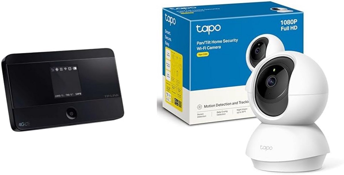 Combineer moeiteloos draagbare internettoegang met beveiliging met deze bundel van een 4G LTE MiFi router en een 360 graden Full HD (1080P) binnenbeveiligingscamera. De draagbare router ondersteunt 4G/LTE met snelheden tot 150 Mbps, maakt verbinding met maximaal 10 apparaten tegelijk en heeft een batterijduur van ongeveer 8 uur. Deze is ideaal voor onderweg, op vakantie of op locatie. De bijbehorende wifi-camera voor binnen biedt heldere beelden dankzij 1080P resolutie, beschikt over 360 graden rotatie voor volledige dekking, nachtzicht en bewegingsdetectie. De camera ondersteunt tweewegsaudio en opslag via een SD-kaart tot 128GB. Dit pakket biedt zowel connectiviteit als gemoedsrust voor zowel thuis als onderweg. (EAN: 9101146831075)
